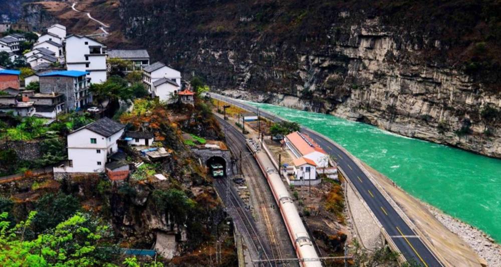 关村坝站:一炮炸出来的火车站,电影《观音山》曾在此取景,据说当初修建的时候,装了炸药388吨,夷平了山头,填平两个深谷,才造就了这个全国罕见的桥隧相连的洞中火车站。