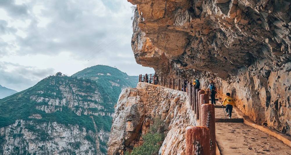 早餐后出发,前往古路村徒步起点,整理好徒步装备,在领队的带领下开始徒步出发,脚下是千米深渊,头顶是索道穿云,一起感受悬崖上的石栈道,欣赏金口河的壮丽美景,一路打卡拍照。