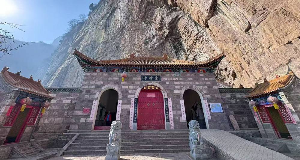 辉县三龛庙(云峰寺)位于河南省辉县市上八里镇石门水库右侧的绝壁丹崖上,海拔约600米,始建于宋代,以其独特的地理位置、宗教历史和自然景观而闻名。三龛庙建于红岩绝壁的三个天然龛洞中,地势险峻,从山下仰望如同悬于空中,攀登过程需穿越崖壁和荆棘,体现了古代工匠在险要地形上的建筑智慧。紧邻的“拇指山”是显著地标,从特定角度观看酷似拇指形状;周边还有石门水库、老爷顶等自然与人文景观,形成“移步异景”的壮丽画卷。