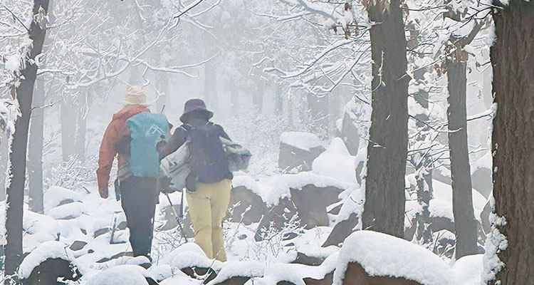 ① 登山包、防滑登山鞋+冰爪(必带)、雪套、登山杖(建议一对)、防风防水外套、速干保暖内层、保暖三件套(帽/手套/围脖)、头灯/手电(隧道照明)、暖手宝、保温杯等;