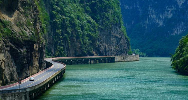 这里禁止外国人入内,国人却免费游览。沿大渡河短短26公里峡谷汇聚了水上公路、挂壁山路、悬崖村寨、瀑布险滩、洞中火车站等景点。