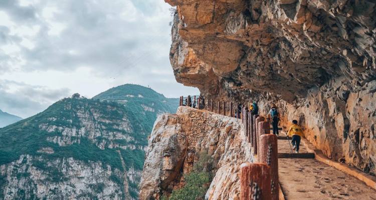 古路村:传说中的天边人家,位于四川大渡河大峡谷入口的绝壁之上,被称为悬崖上的村庄,是个500多人的彝族村落。从大峡谷一线天位置徒步上山,山路穿山挂壁极其险峻,很适合拍照。终点就是悬崖上的古路村,村里观景台可以俯瞰大峡谷。